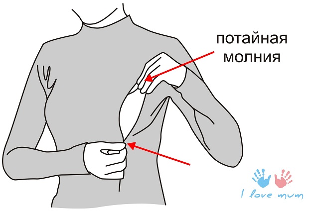 После родов: Водолазка-туника из теплой ткани - флиса, для удобного кормления грудью имеются прорези в швах на потайных молниях. Модель подчеркивает женственный силуэт и скрывает недостатки фигуры, которые нередко возникают у женщин после родов.