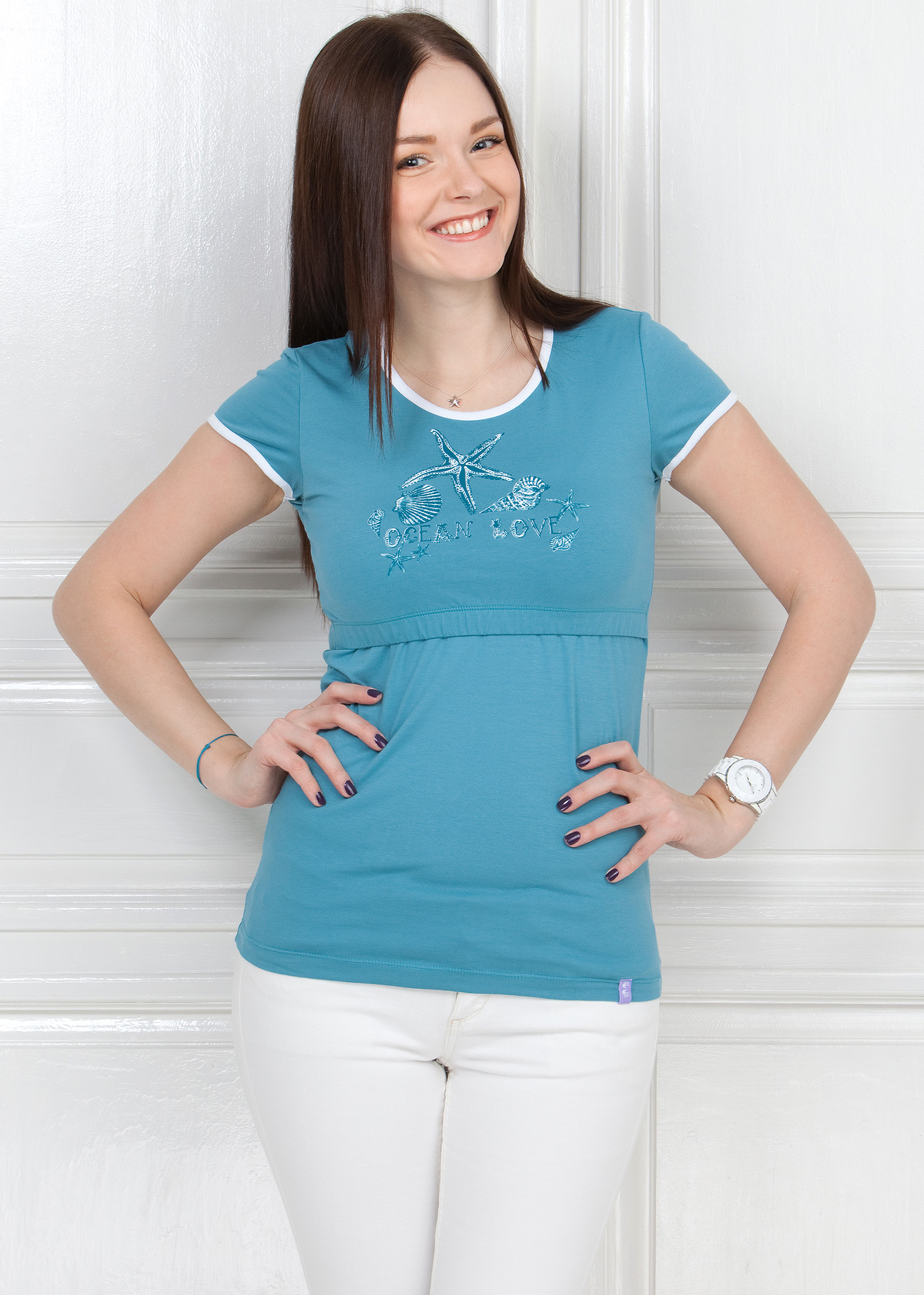 Футболка для кормящих "Классическая" морская волна |
