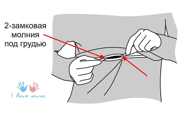 «Секрет кормления» скрыт в горизонтальной молнии по линии груди.