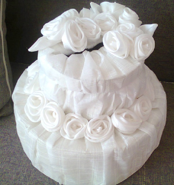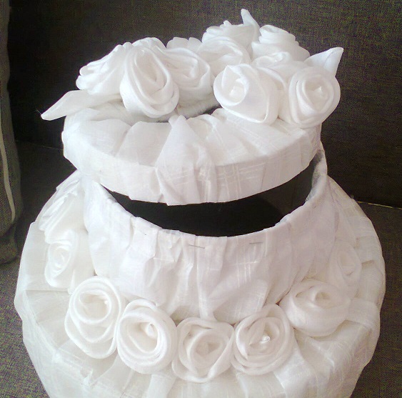 2-х ярусный «тортик», общая высота 30 см, диаметр нижнего «коржа»35 см, верхнего 21 см, открывание –сверху съемная крышка.