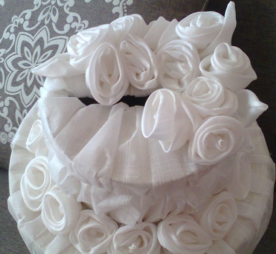 2-х ярусный «тортик», общая высота 30 см, диаметр нижнего «коржа»35 см, верхнего 21 см, открывание –сверху съемная крышка+